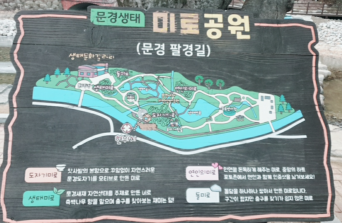 문경생태미로공원으로 규모가 크지 않아서 오랜 시간 머물지 않아도 되고 미로를 통과해서 나오는 재미는 충분히 느낄 수 있어서 문경새재를 찾는 분들이라면 들리는 필수코스입니다.